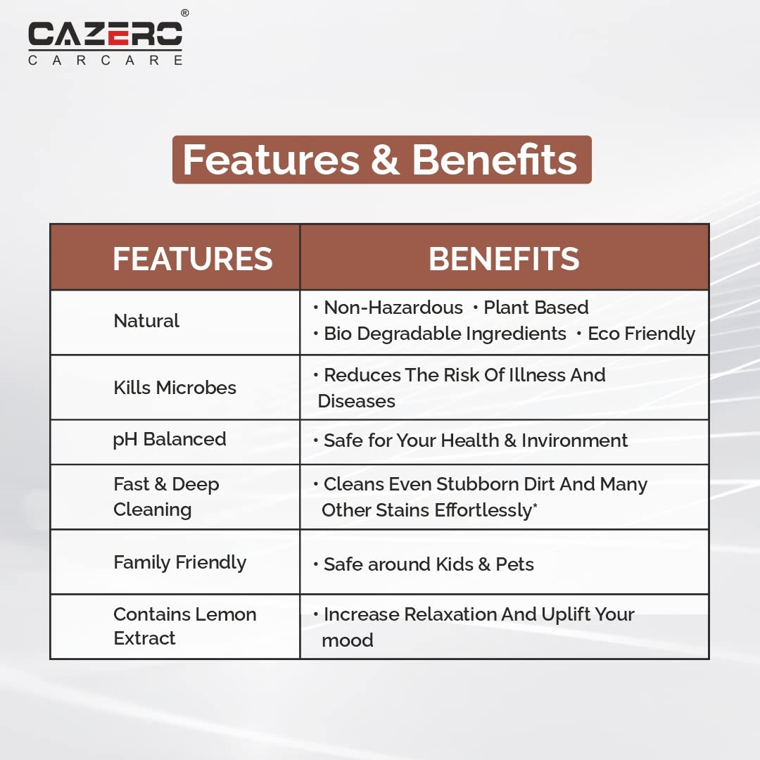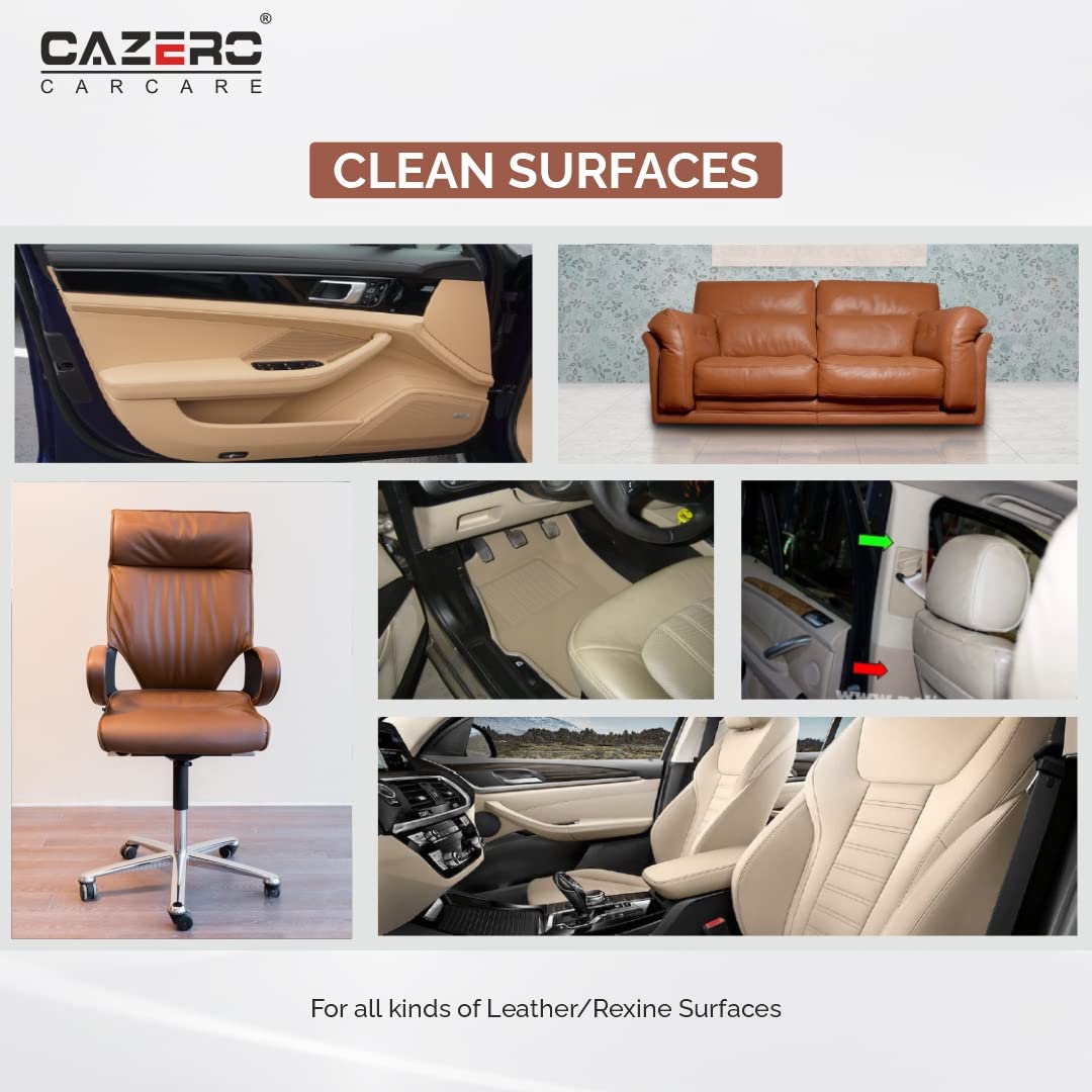 Keep your leather items fresh, clean, and safe with CAZERO Natural Leather Cleaner Spray – a powerful plant-based formula that gently lifts dirt, stains, and grime without harming the material. Designed with eco-conscious care, it’s anti-microbial, non-toxic, and completely pH-balanced, making it ideal for use on all types of leather and rexine surfaces.